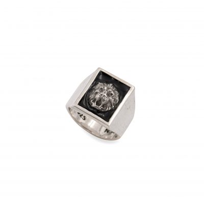 טבעת חותם מלבן אריה עם אמייל שחור