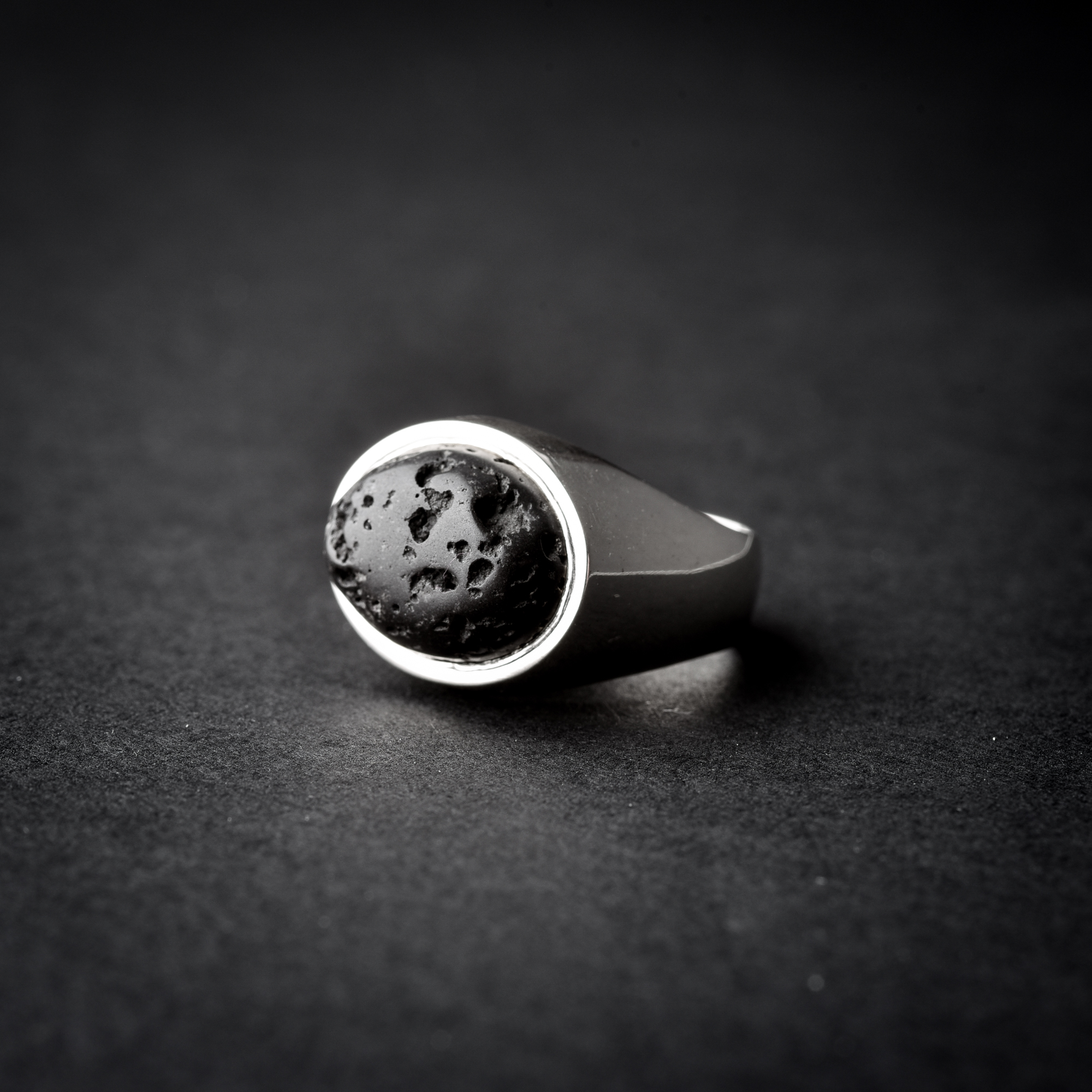 הטבעת משובצת אבן לבה שחורה.